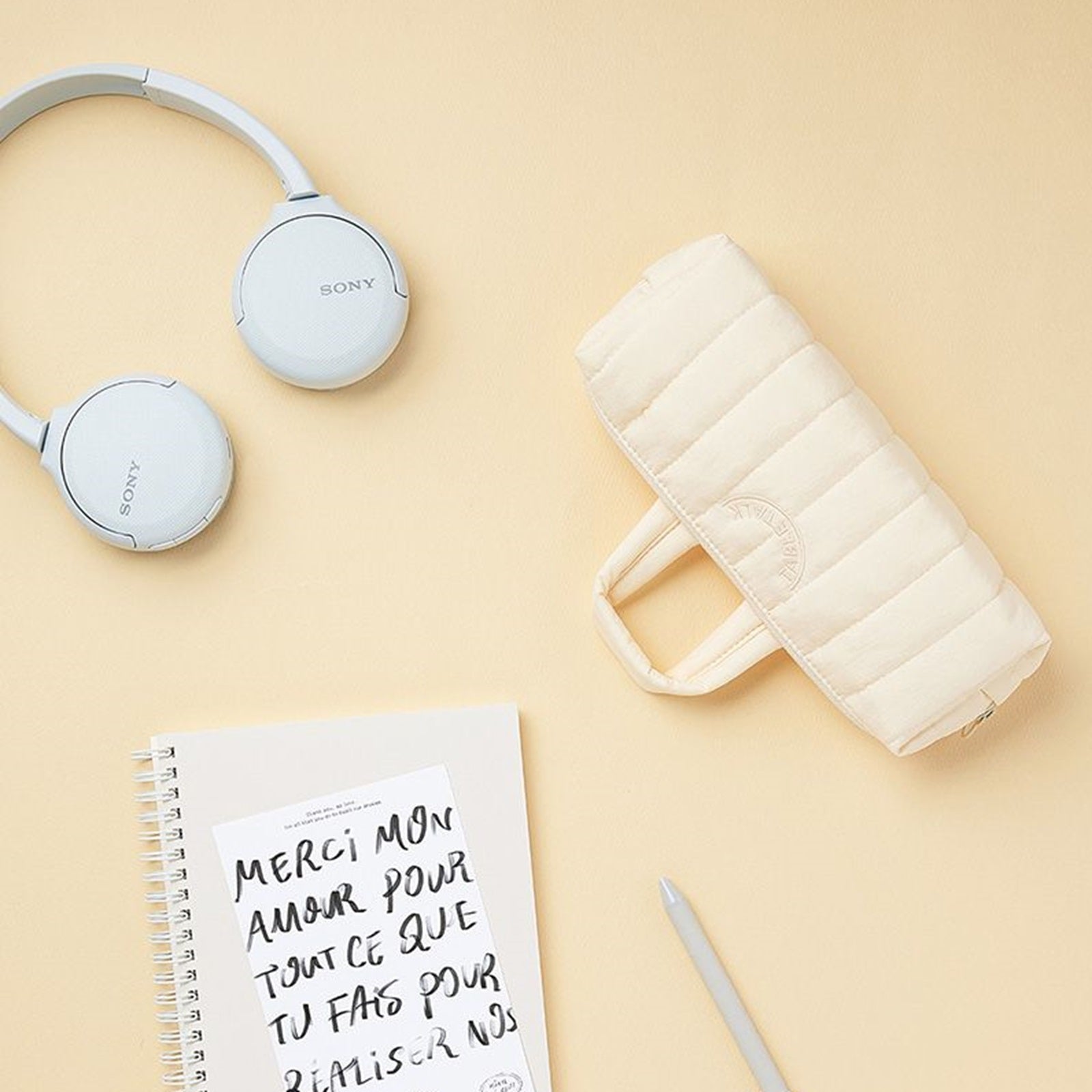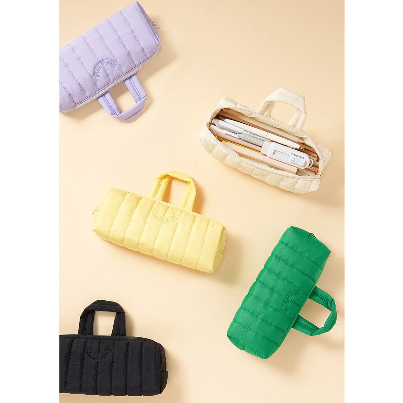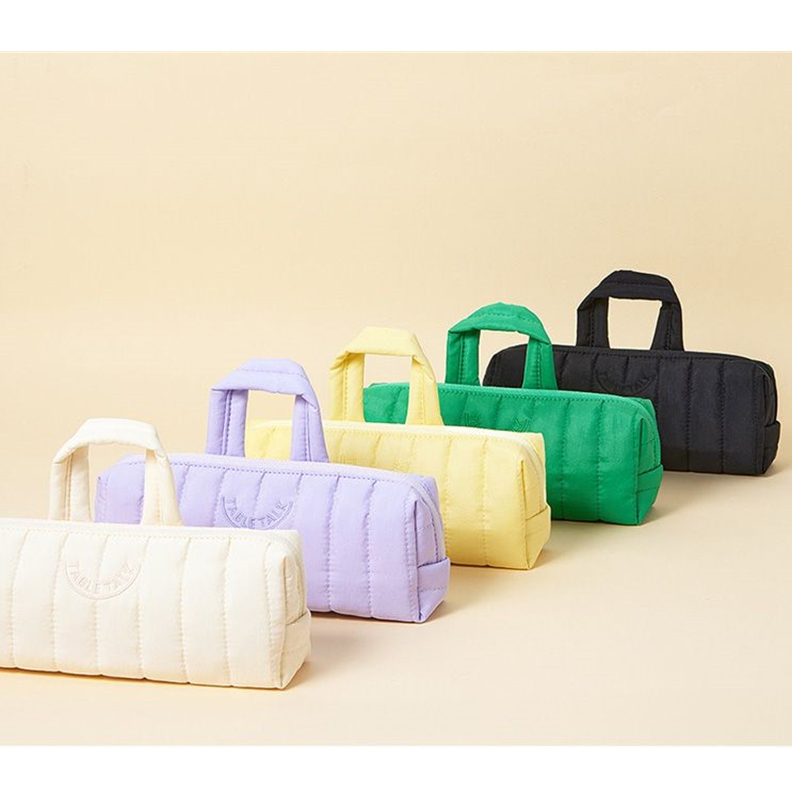 冬のダウンジャケットからインスピレーションを受けた、テーブルトークのダウントートハンドルポーチが登場。20 x 70 x 5cmの長くてスリムなデザインで、デイリーの化粧品やペンなどをすっきりと収納できます。ブラック、クローバーグリーン、クリーム、レモンイエロー、ラベンダーの5色展開で、あなたのスタイルに合わせて選べます。