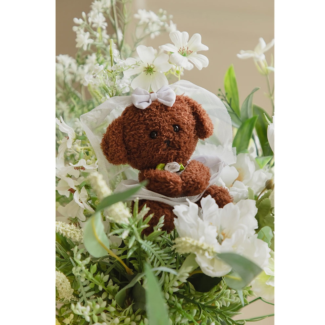 もふもふのブラウンプードルが、純白のドレスと黒のタキシード姿でウェディング仕様に変身♡