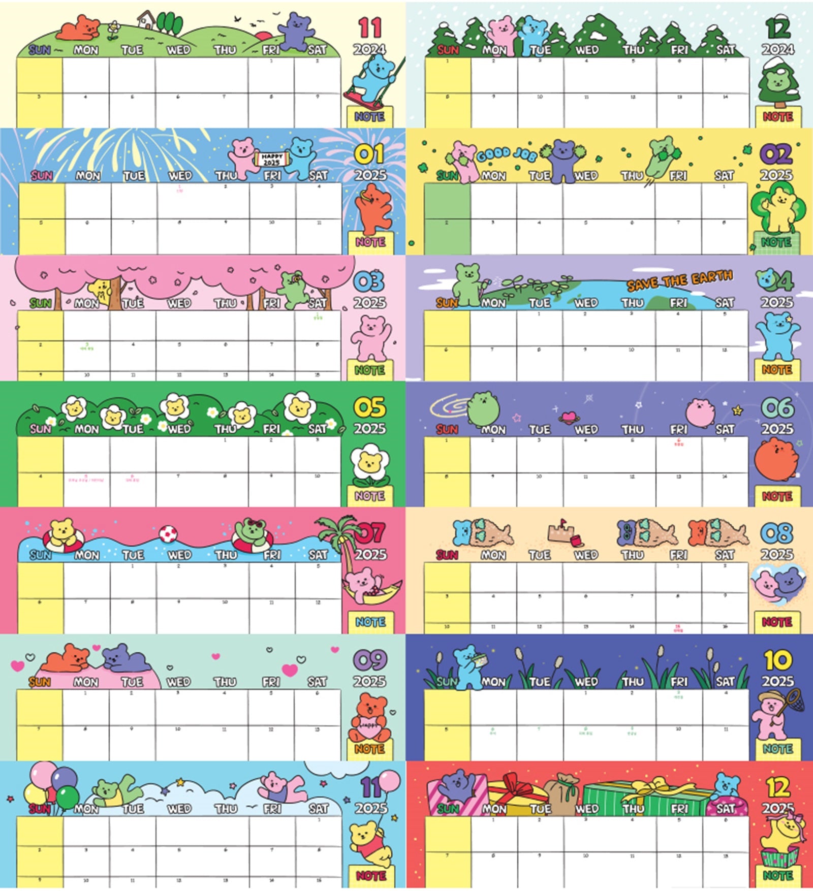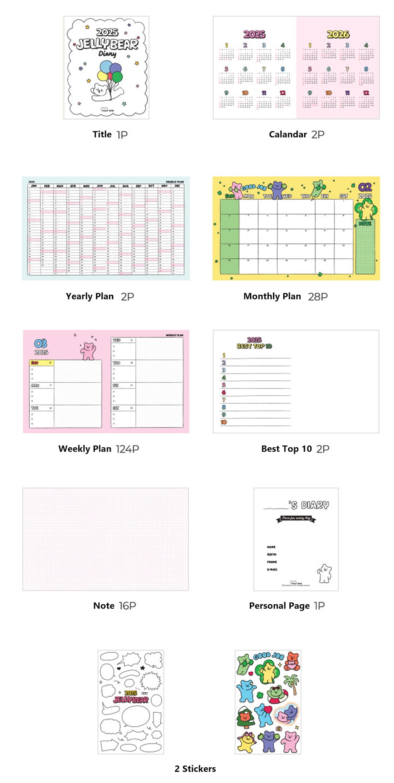 デイリーライク 2025 ゼリーベアダイアリー 韓国 手帳 スケジュール帳 ダイアリー システム手帳 マンスリー ウィークリー 手帳 日付表示あり
