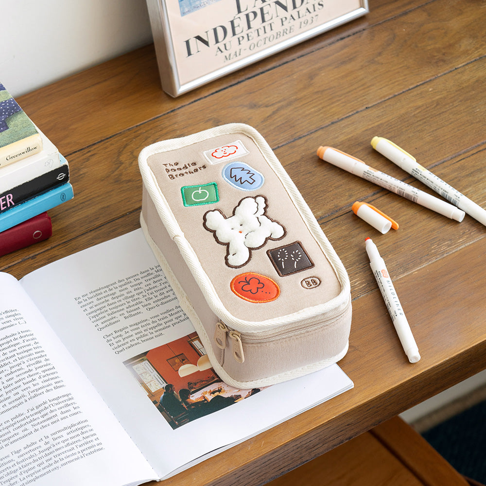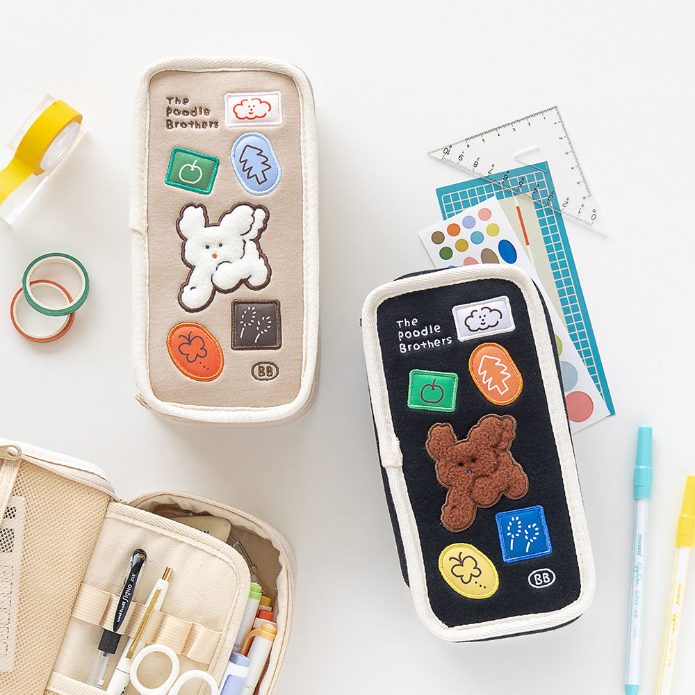 こちらは、ブランチブラザーの新しいペンケースで、従来の「プードルブラザーズ ペンケース」をさらに進化させたアップグレードバージョンです。シンプルでありながら遊び心あふれるデザインで、より多くのアイテムを収納できる大容量ペンケースとして新たに登場しました。