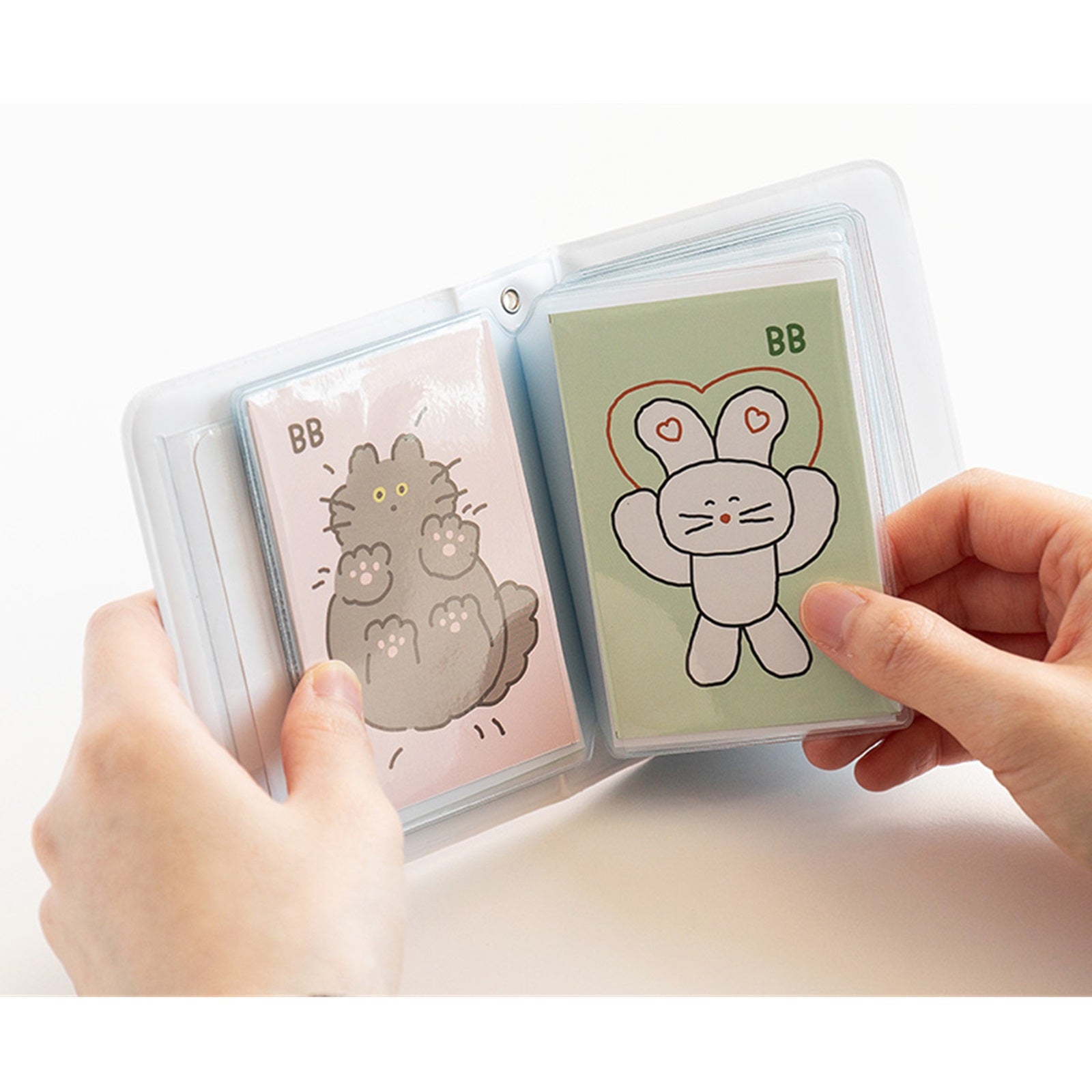 ケースを開けば、透明なポケットが20枚。大切な思い出や、あなたの“推し”のカードを最大40枚までしっかりと収納できます。ポケットはどれもクリアなPVCでできており、カードの美しさをそのまま引き立てます。表面の丸い窓からは、お気に入りの1枚が顔をのぞかせ、毎日をちょっぴり特別にしてくれるでしょう。