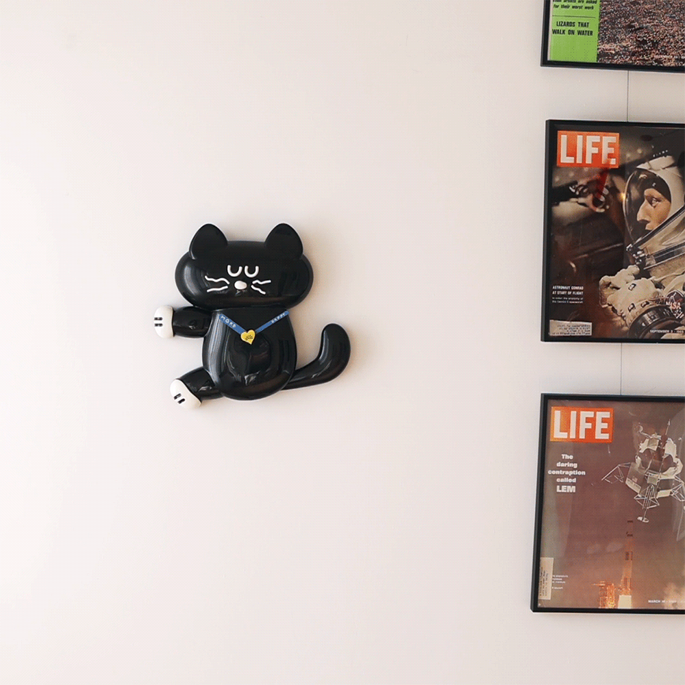 猫のしっぽが揺れるデザインが時計を超えた"動くアート"として空間を魅了します。