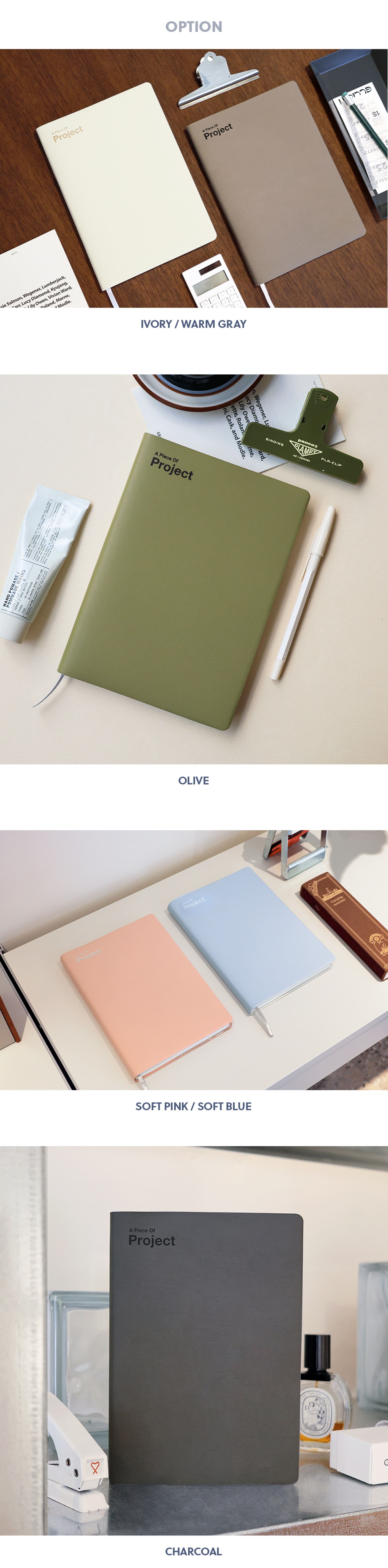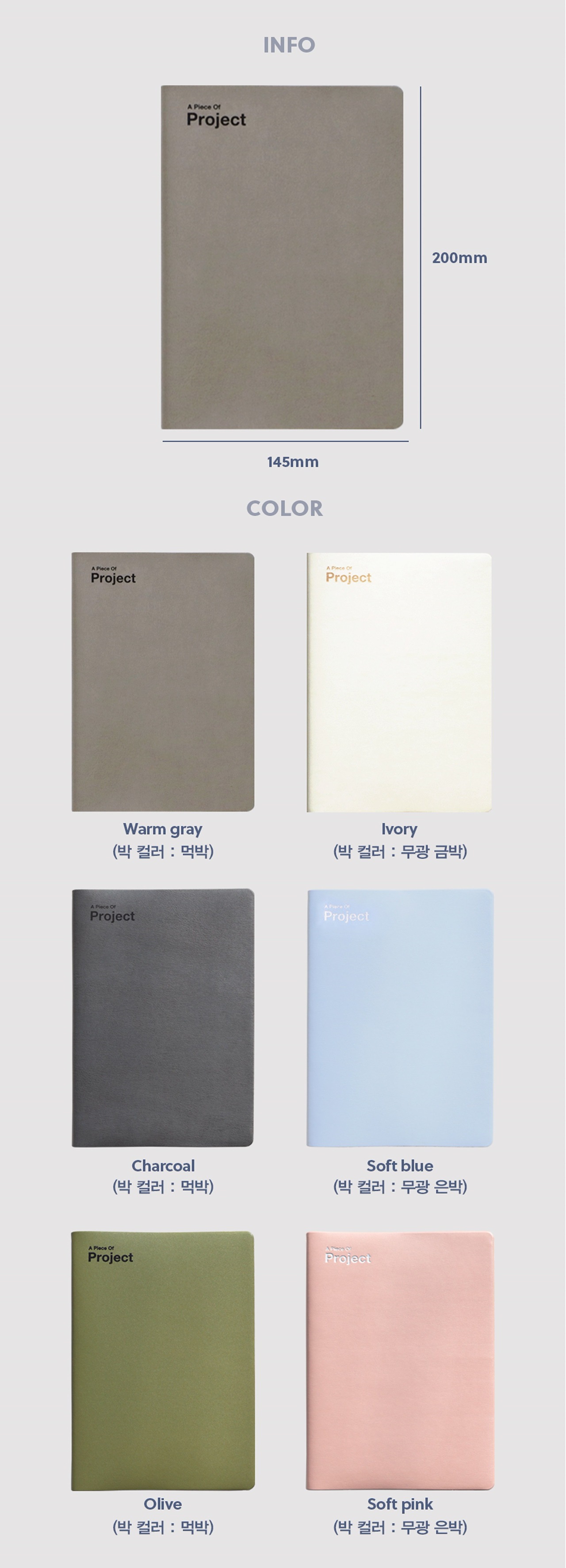 全6色のオプション(ウォームグレー、アイボリー、チャコール、ソフトブルー、オリーブ、ソフトピンク)で、自分らしいスタイルに合わせられます。シンプルで洗練されたカラーに、「A piece of Project」のレタリングがアクセントを加えます。高級感のあるPU素材でできており、手に取った瞬間からその質感に魅了されます。