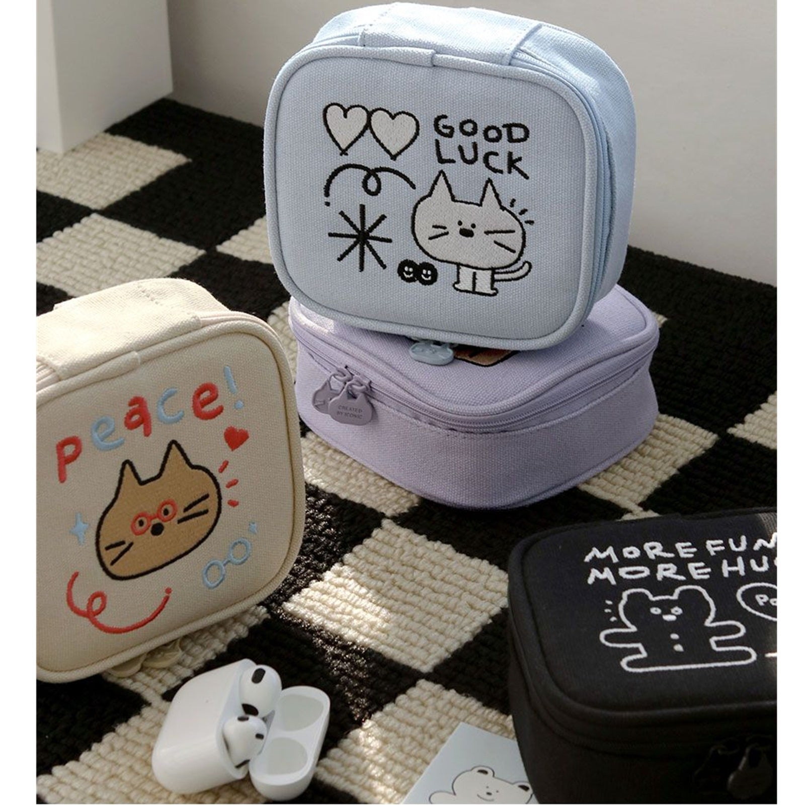 ICONIC 韓国 ミニポーチ メイクポーチ 化粧ポーチ コスメポーチ 小物入れ 可愛い刺繍 巾着ポーチ メイクポーチ韓国 ポーチブランド